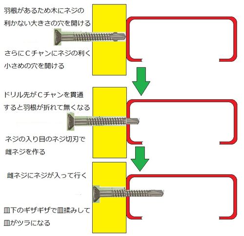 先日のお客様 「フレキのついたタッピングビスを下さい。」 大方の予想ではリーマー&ドリル&フレキ付のタッピングビスと思いましたが ドリル刃のことをタッピングと解釈し ドリルの次の羽根部分をフレキを解釈していました。 さらに確認のため 「木をCチャ…