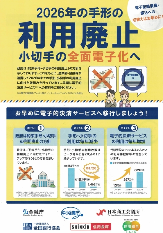 全金融機関で2027年4月1日以降小切手と手形が使えなくなるとのこと。